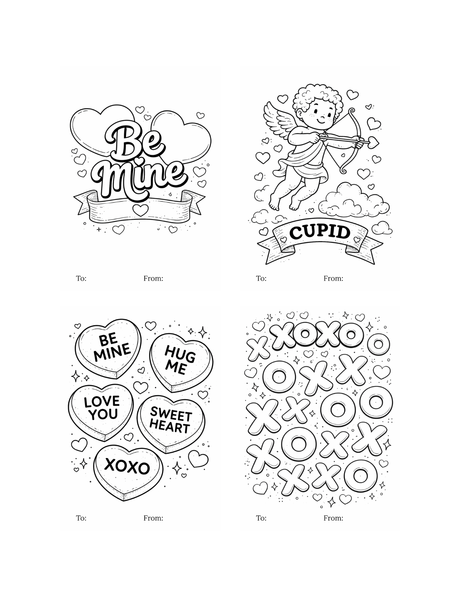 These Valentine color page cards are designed to be flexible and simple: