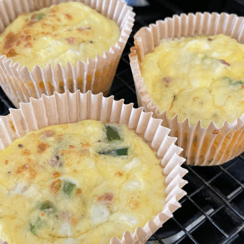 I make mine in a large muffin tin so I double my batch to get 12, filling each cup about halfway. That size works perfectly for my mornings, and on average, I’m getting about 12-5 grams of protein per muffin. Two of them and I’m already well on my way for the day—without thinking too hard.
